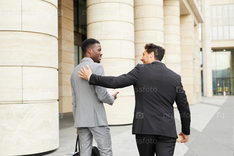Два бизнесмена встречаются в городе
