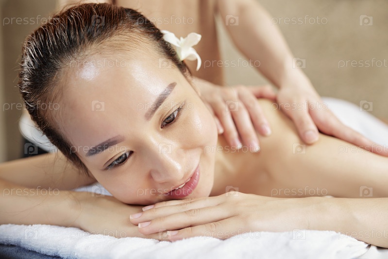 Азиатская женщина наслаждается массажем спины