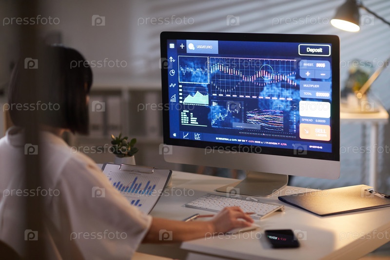 Деловая женщина, анализирующая финансовые графики