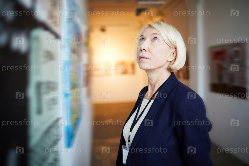Зрелая женщина в художественной галерее