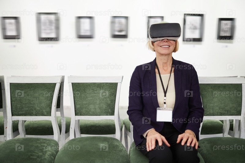 Женщина, смотрящая VR в музее