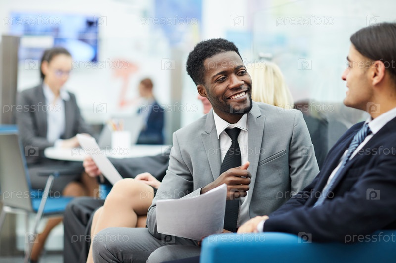 Два офисных работника разговаривают