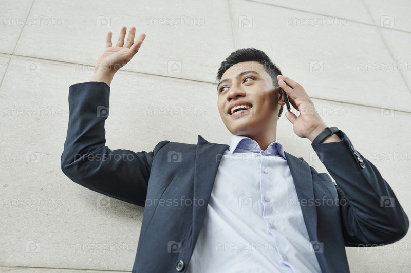 Веселый бизнесмен, делающий селфи