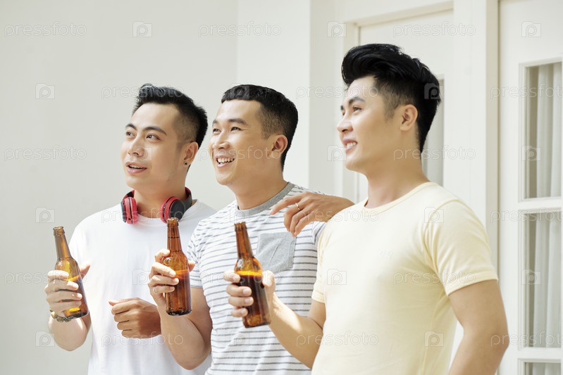 Веселые друзья пьют пиво