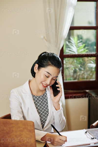 Рецепсионистка звонит по телефону