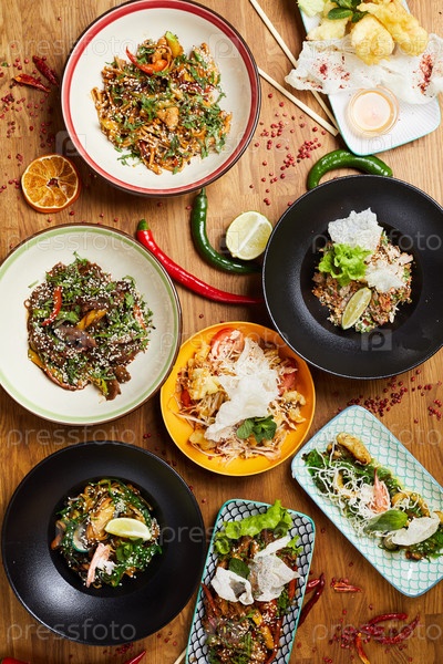Пикантная азиатская еда на столе