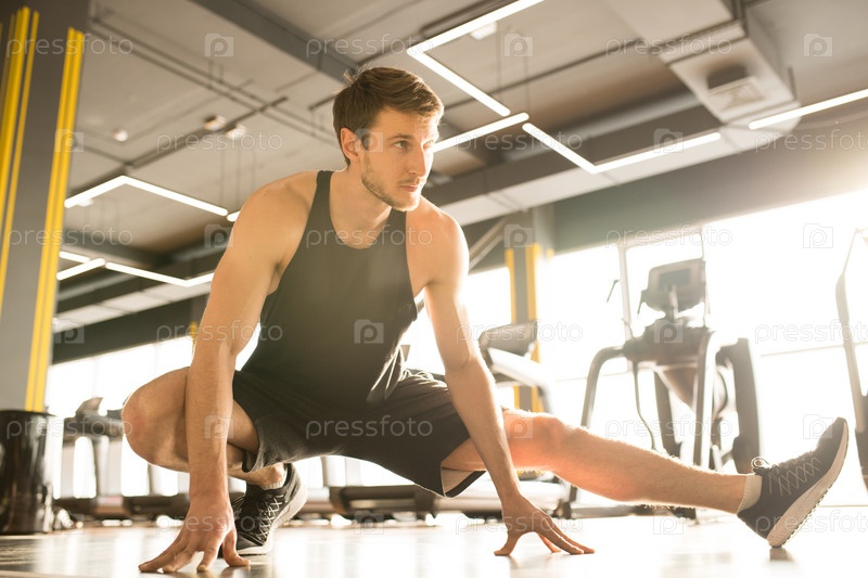 Мужчина разогревается в тренажерном зале