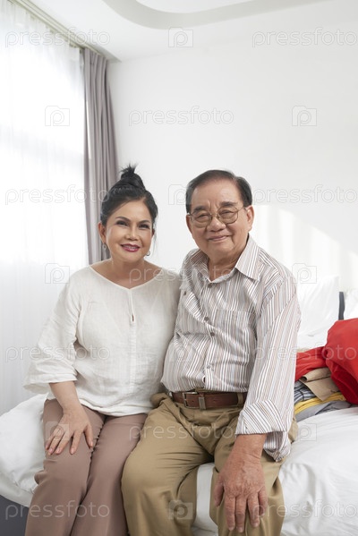 Счастливая пожилая пара в гостиничном номере
