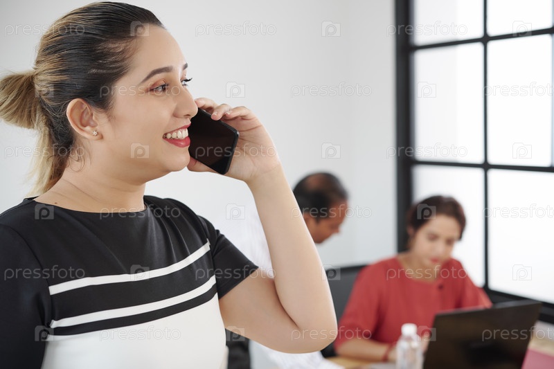 Деловая женщина, работающая по телефону в офисе