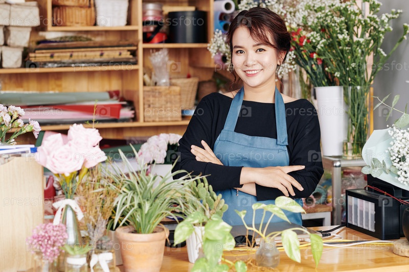 Красивая владельца цветочного магазина