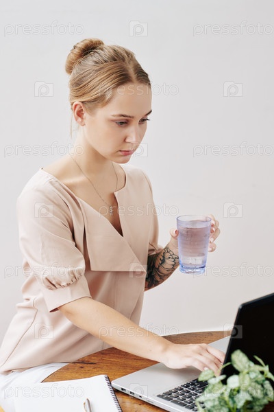 Молодая женщина проверяет электронную почту
