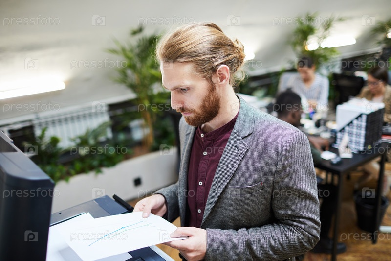 Бизнесмен сканирует документы в офисе