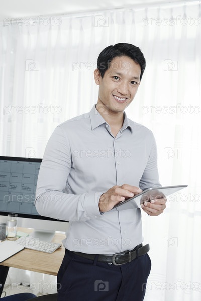 Предприниматель работает над цифровым планшетом