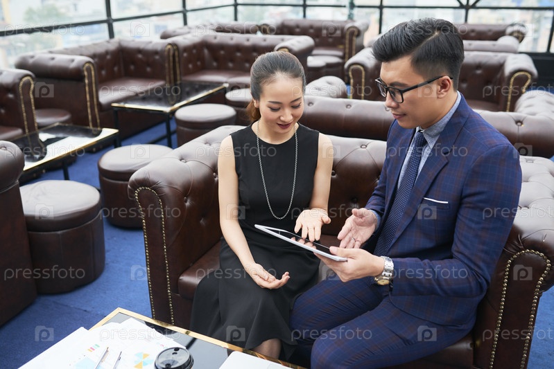 Коллеги по бизнесу обсуждают онлайн-презентацию
