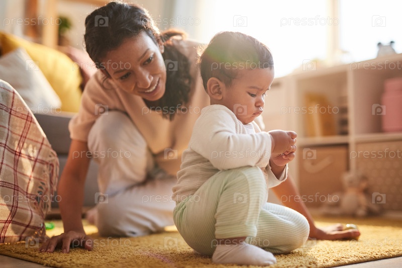 Маленький ребенок играет с матерью дома