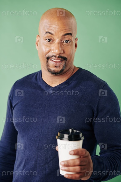 Счастливый человек пьет кофе