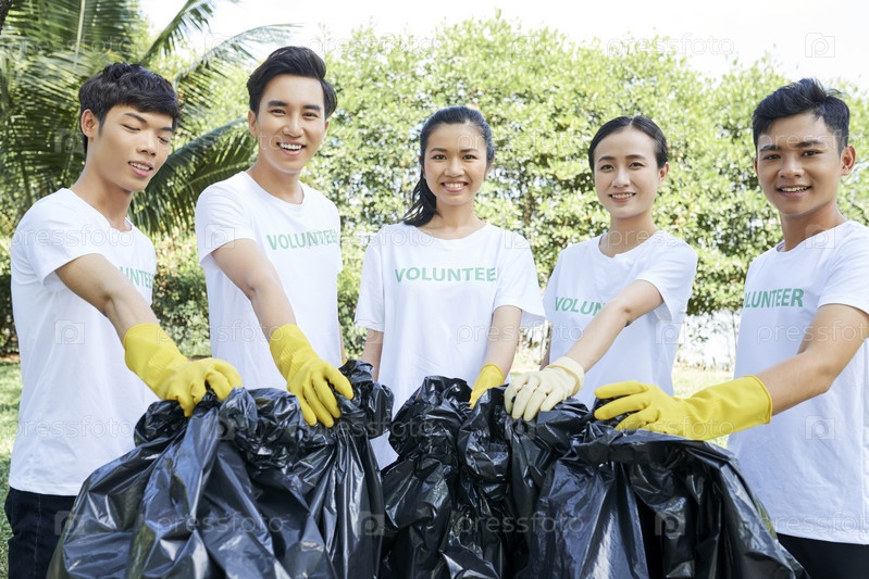 Добровольческая группа с мусорными мешками