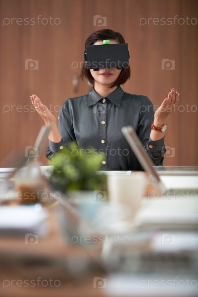 У бизнес-женщины есть виртуальная встреча в зале заседаний