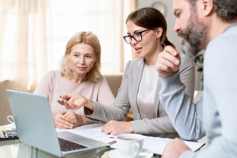 Один из современных менеджеров или аналитиков, указывающих на дисплей ноутбука