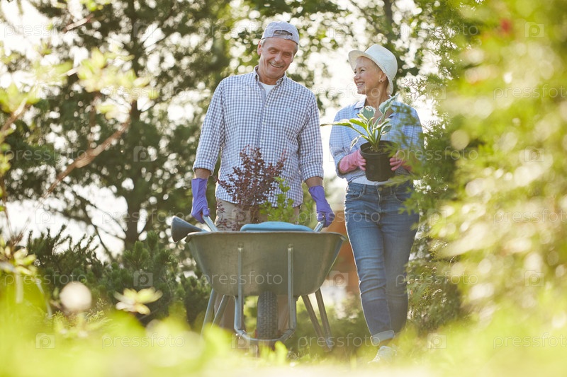 Пара старших фермеров в саду