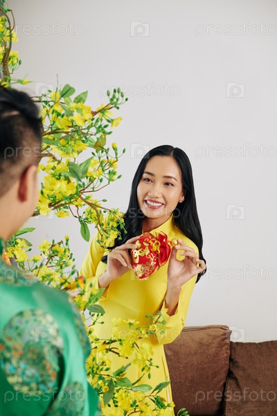 Женщина украшает абрикосовое дерево