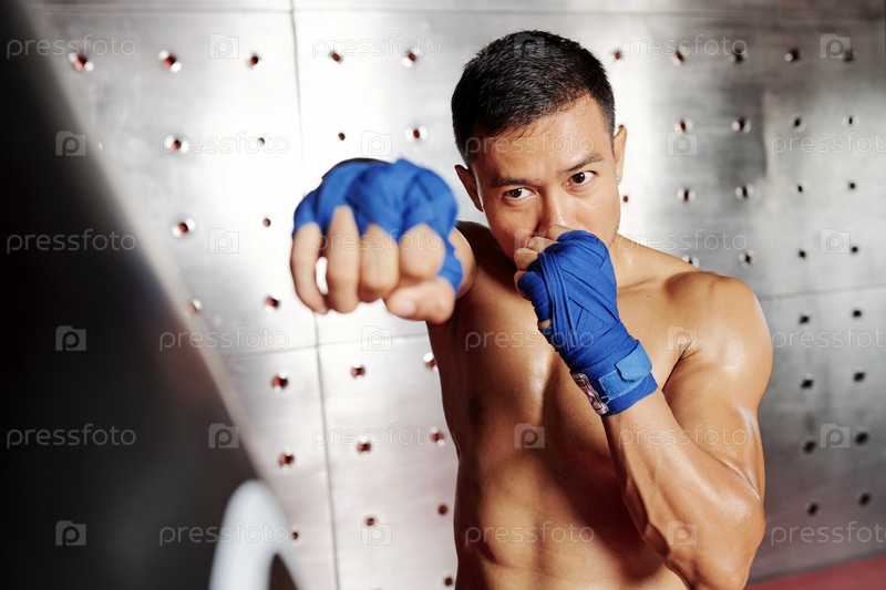 Тренировки боксера в спортзале
