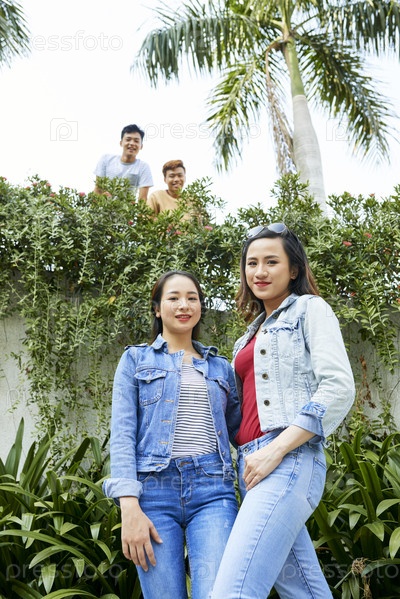 Друзья развлекаются на улице