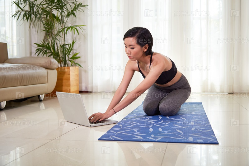 Женщина, общающаяся онлайн во время тренировки