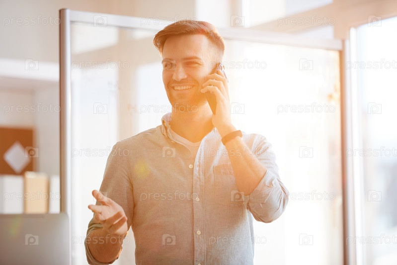 Современный бизнесмен разговаривает по телефону в солнечном свете