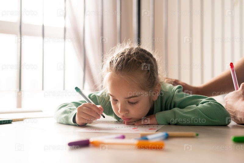 Серьезная девушка цветная картина