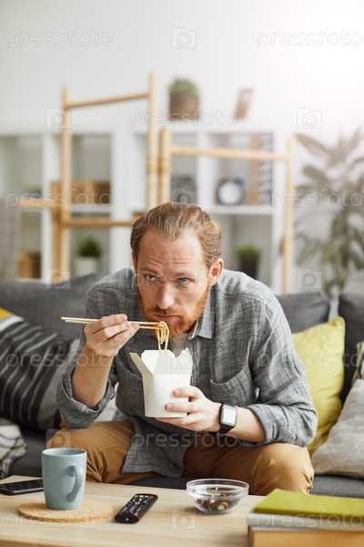 Ленивый мужчина смотрит телевизор дома