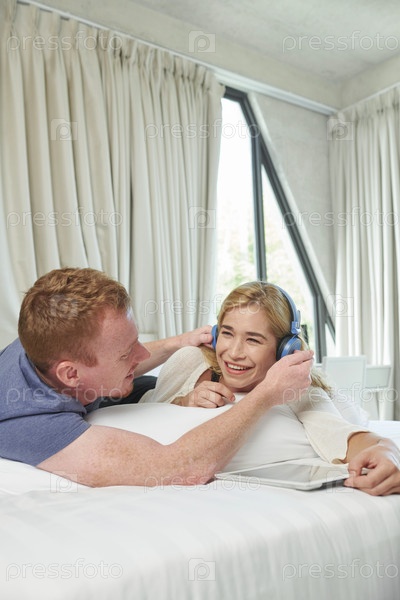Молодая пара отдыхает на кровати