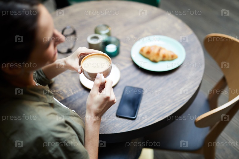 Женщина пьет свежевыжатый кофе