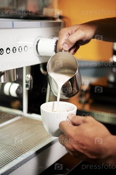 Бариста делает кофе с молоком