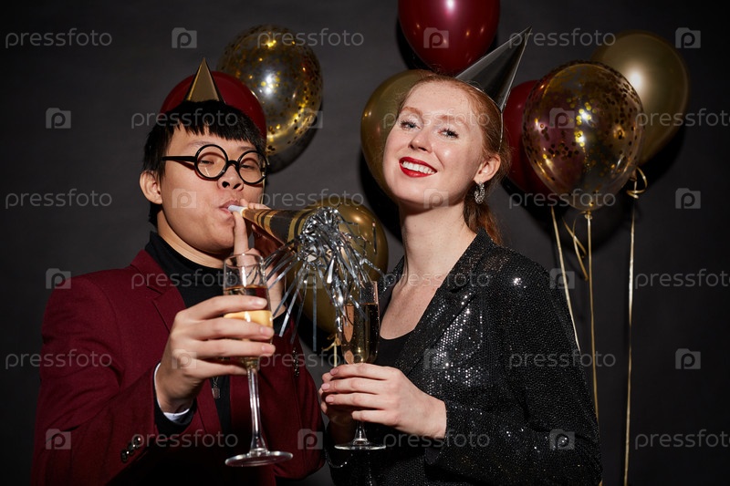 Пара позирует на рождественской вечеринке