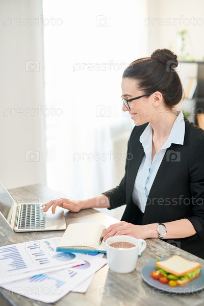 Улыбающаяся деловая женщина наслаждается работой