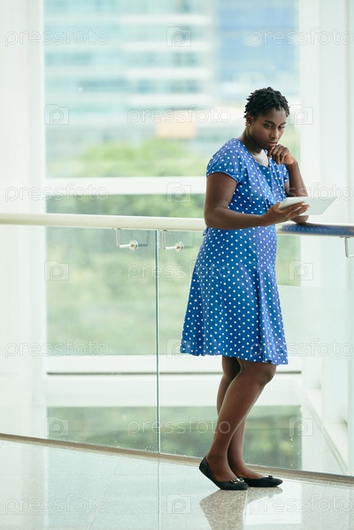 Вдумчивая бизнесвумен с планшетом