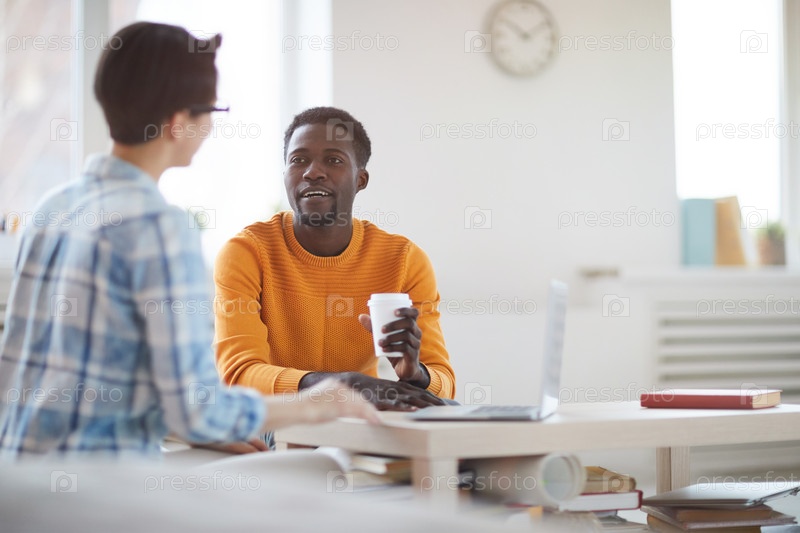 Современный африканский мужчина разговаривает с коллегой в офисе