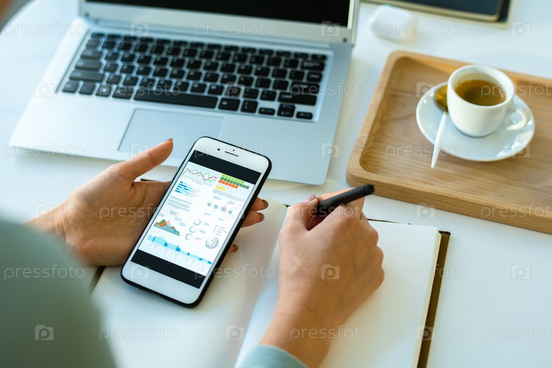 Руки молодой современной женщины-экономиста, анализирующей финансовые данные