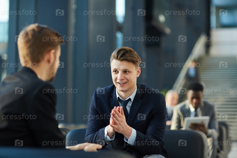 Современный бизнесмен, разговаривающий в коридоре