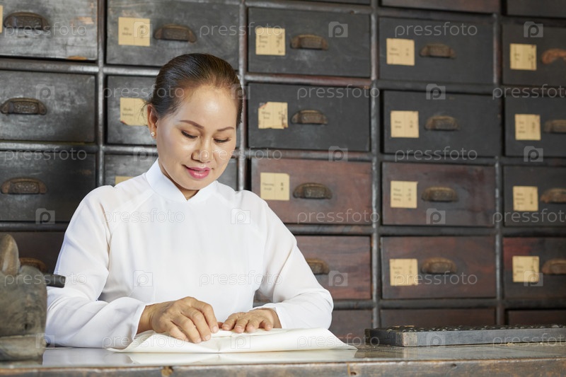 Практикующий китайскую медицину обертывает сухие корни и грибы