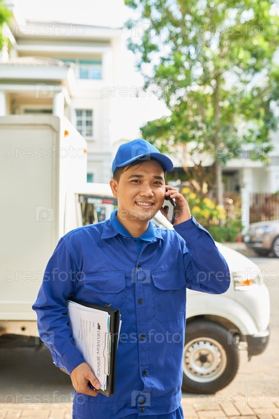 Веселый работник службы доставки