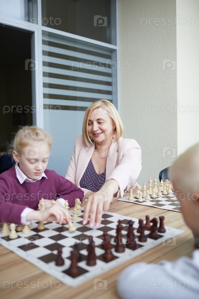 Улыбающаяся учительница помогает детям