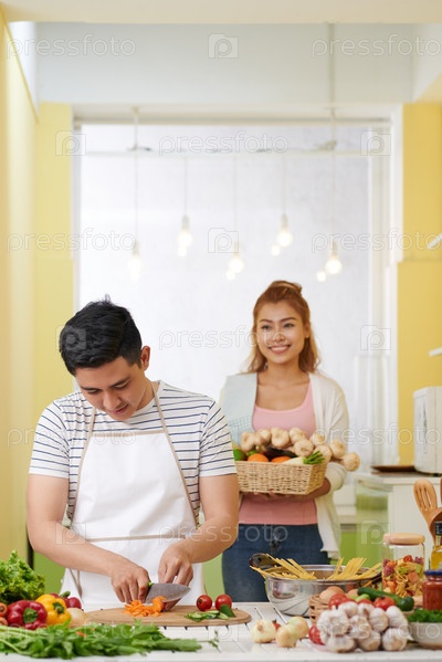 Пара готовит на кухне