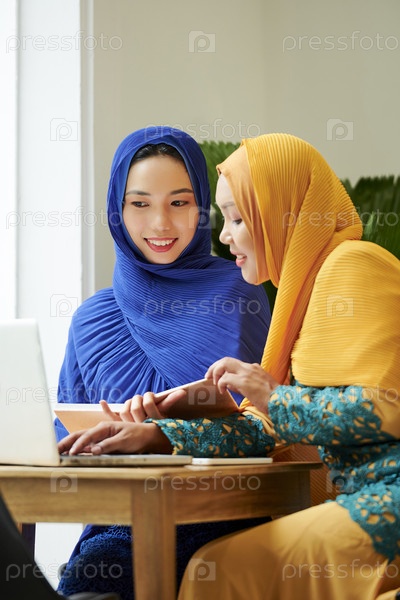 Мусульманские студенты делают домашнее задание в кафе