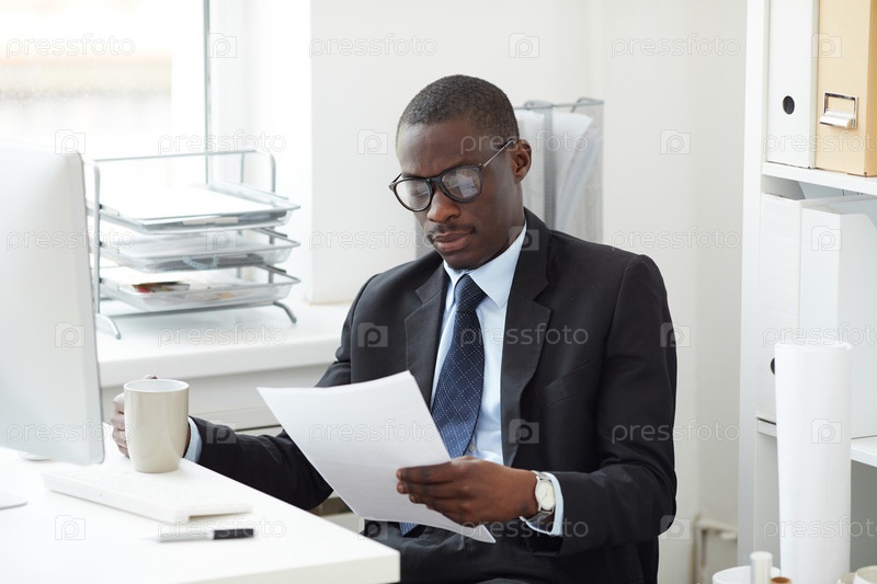 Бизнесмен, изучающий контракт