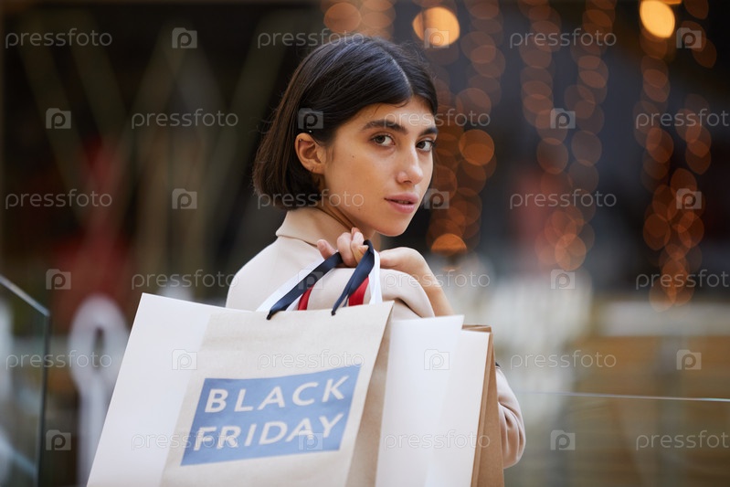 Портрет красивой женщины, держащей сумки для покупок