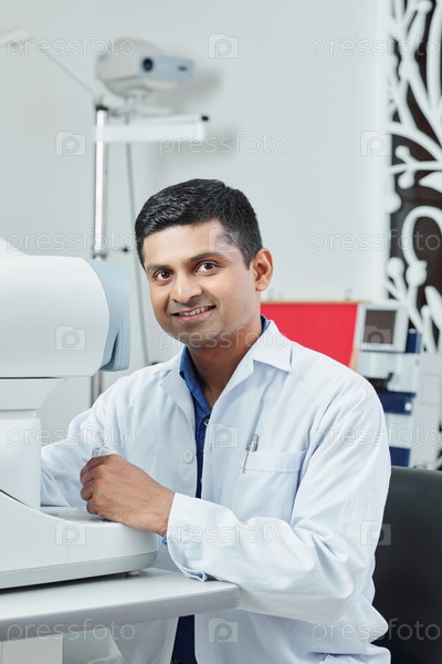 Индийский врач сидит в своем кабинете