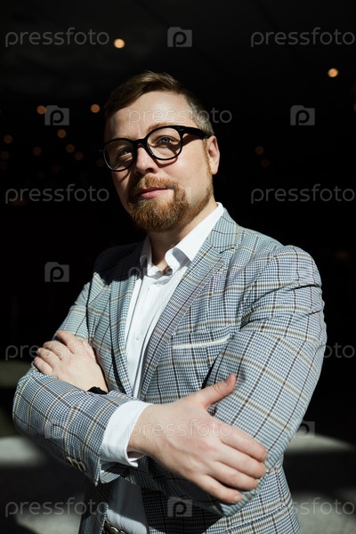 Успешный бородатый человек на сцене