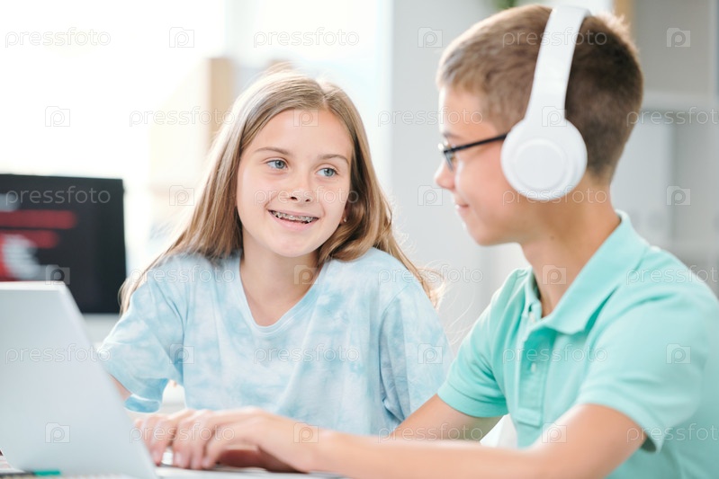 Дружественные одноклассники средней школы обсуждают данные для семинара или следующего урока